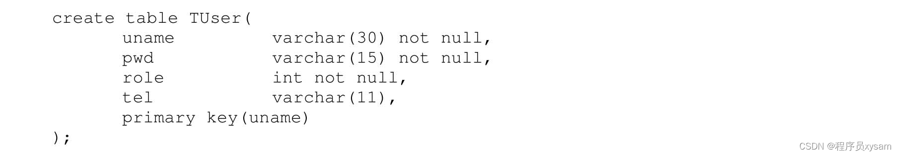 此处使用MySQL数据库,创建用户表,其中用户名字段为主键。