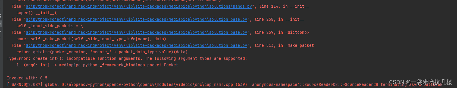 在做手部动作追踪时,由于MediaPipe更新了手部对象的参数,导致错误