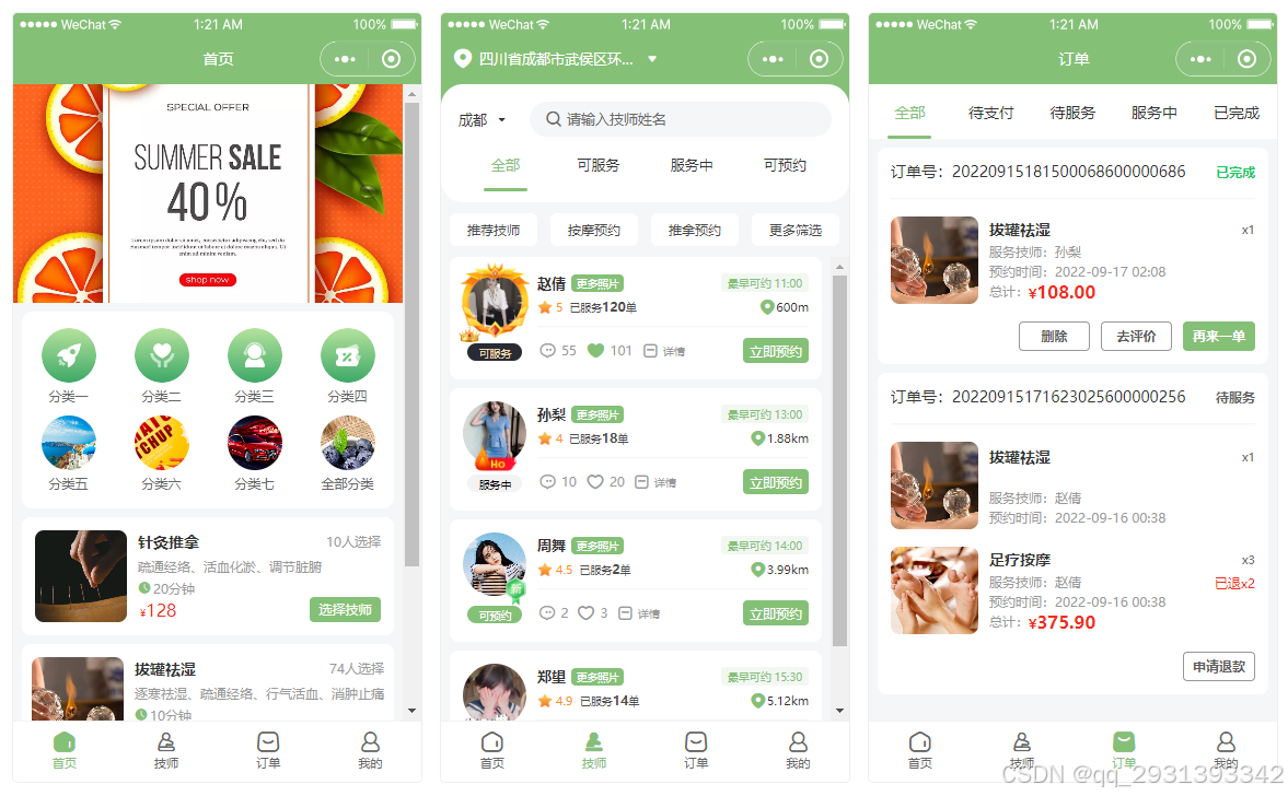本文将详细介绍一款功能强大的按摩到家预约管理系统源码,该系统基于微信小程序开发,采用PHP+MySQL技术栈,支持多端适配,提供从用户预约到技师管理、订单处理的全流程解决方案。源码完全开源可二次开发,并附带完整的搭建部署教程,是创业者快速搭建上门按摩服务平台的理想选择。
