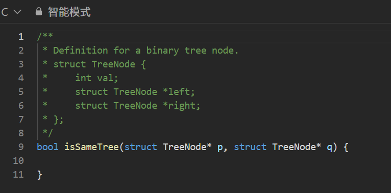bool isSameTree(struct TreeNode* p, struct TreeNode* q) {