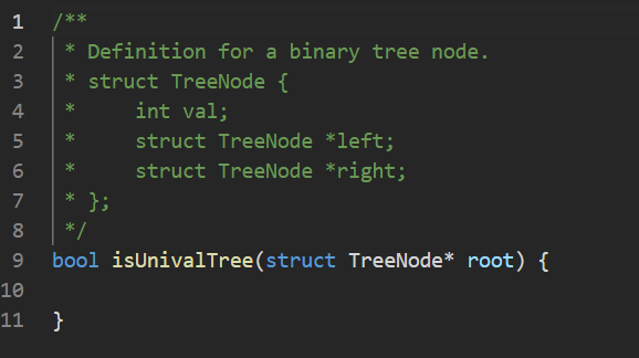 return isUnivalTree(root->left) && isUnivalTree(root->right);