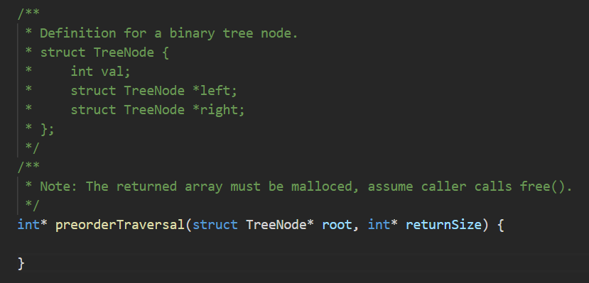 int* preorderTraversal(struct TreeNode* root, int* returnSize) {