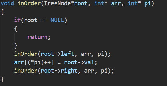 void inOrder(TreeNode*root, int* arr, int* pi)