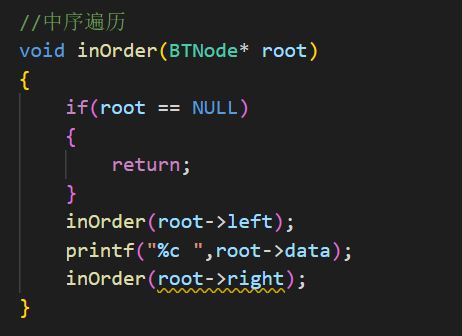 主要思路就是先定义结点结构体,然后构建二叉树并传回根结点用结构体指针root接收,有了根结点,即可完成中序遍历。