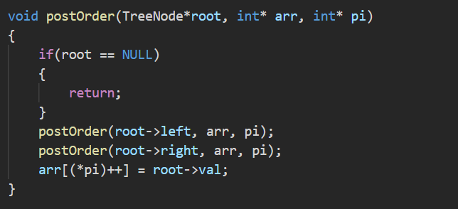 void postOrder(TreeNode*root, int* arr, int* pi)