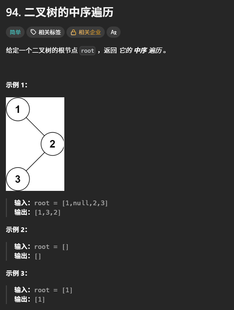 中序遍历的顺序为“左根右”,故优先往左子树向下递归,然后“触底反弹”(遍历到NULL)后return再将根结点放入数组中,之后递归右子树,顺序上有差异,这是唯一的不同。