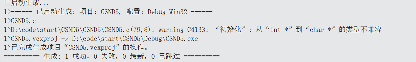 在上面的代码中,将⼀个int类型的变量的地址赋值给⼀个char*类型的指针变量。编译器给出了⼀个警告(如下图),是因为类型不兼容。而使用void*类型就不会有这样的问题。