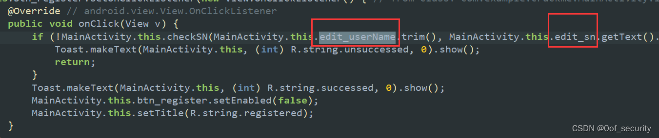 博客讲述了对代码进行反编译分析的过程。通过jadx查看反编译代码,找到onClick事件,发现UserName固定,和用户输入的sn交给checkSN函数校验。还提到sn长度要求及加密比较规则,最终得出要输入的SN。