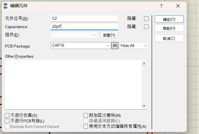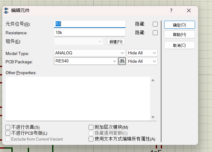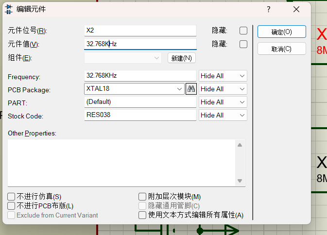 接下来对电阻,电容,晶振进行数值的修改,我们双击电阻,会有电阻属性,我们修改为1M