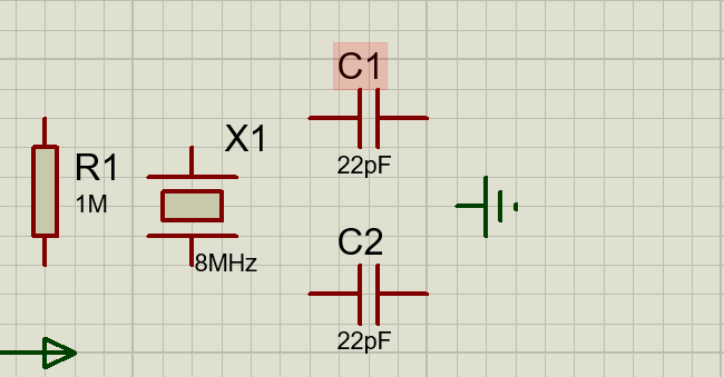 构成:一个8MHz(或其它频率,但8MHz最常用)的无源晶振,连接在