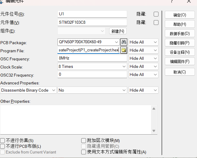 然后我们双击32单片机,然后把晶振改为8MHz因为我们引入了低速时钟