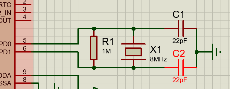 负载电容:同样需要连接两个负载电容(通常为6~22pF)。