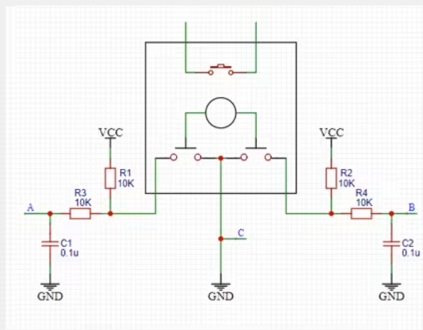 我们用的是可以测方向的编码器,它可以产生两个波形,其中一个波形比另一个滞后90°,可以用来我们的方向测定,是正交编码器。主要用来调节音量等等。