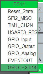将PB14设置为外部中断模式。