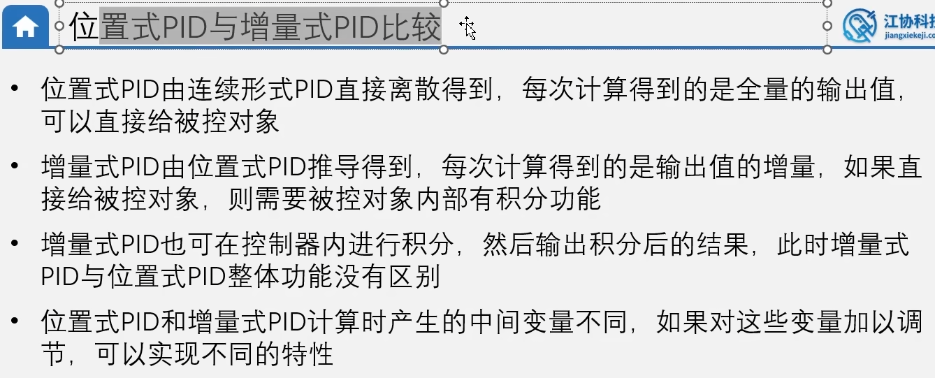 为什么要有增量式PID呢,他和位置式PID有什么区别。之后是位置式PID和增量式PID的比较。
