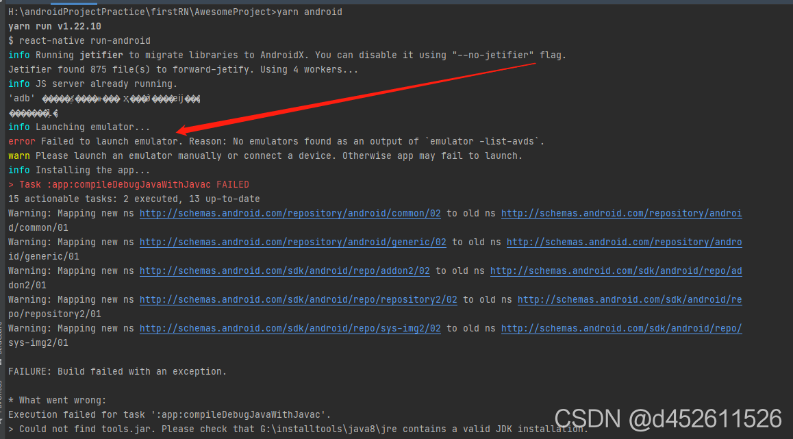 按照https://www.react-native.cn/docs/environment-setup,创建了一个项目,却怎么也启动不起来,现记录下自己整个启动起来的流程