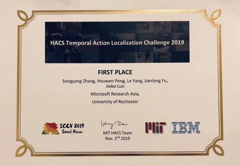 3. Songyang Zhang, Houwen Peng, Le Yang, Jianlong Fu and Jiebo Luo, “Learning Sparse 2D Temporal Adjacent Networks for Temporal Action Localization”, Technical Report