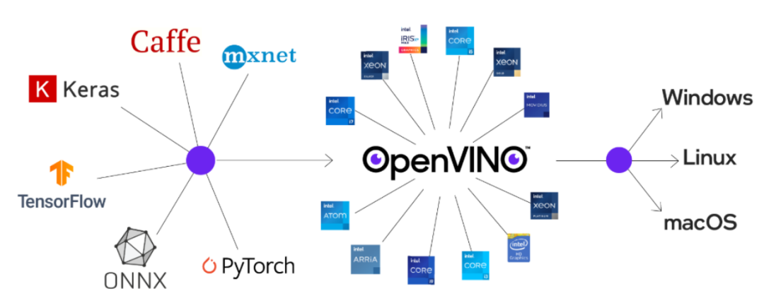 OpenVINO™工具套件是英特尔针对自家硬件平台开发的一套深度学习工具库,包含推理库,模型优化等等一系列与深度学习模型部署相关的功能。同时可以兼容各种开源框架训练好的模型,拥有算法模型上线部署的各种能力,只要掌握了该工具,你可以轻松的将预训练模型在Intel的CPU、VPU等设备上快速部署起来。