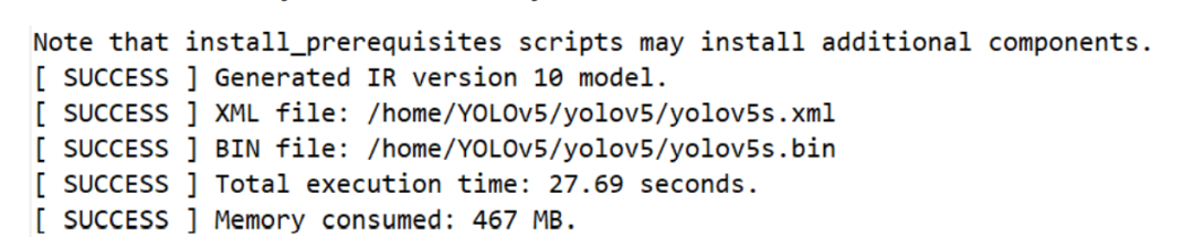 转换成功后,即可得到yolov5s_best.xml 和 yolov5s_best.bin文件。