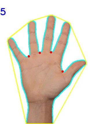 手掌与凸包检测轮廓线的任何偏离的地方都可以视为凸度缺陷。