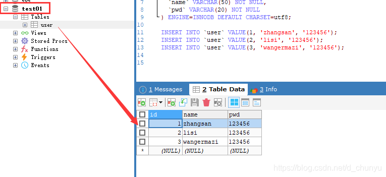 INSERT INTO `user` VALUE(3, 'wangermazi', '123456');