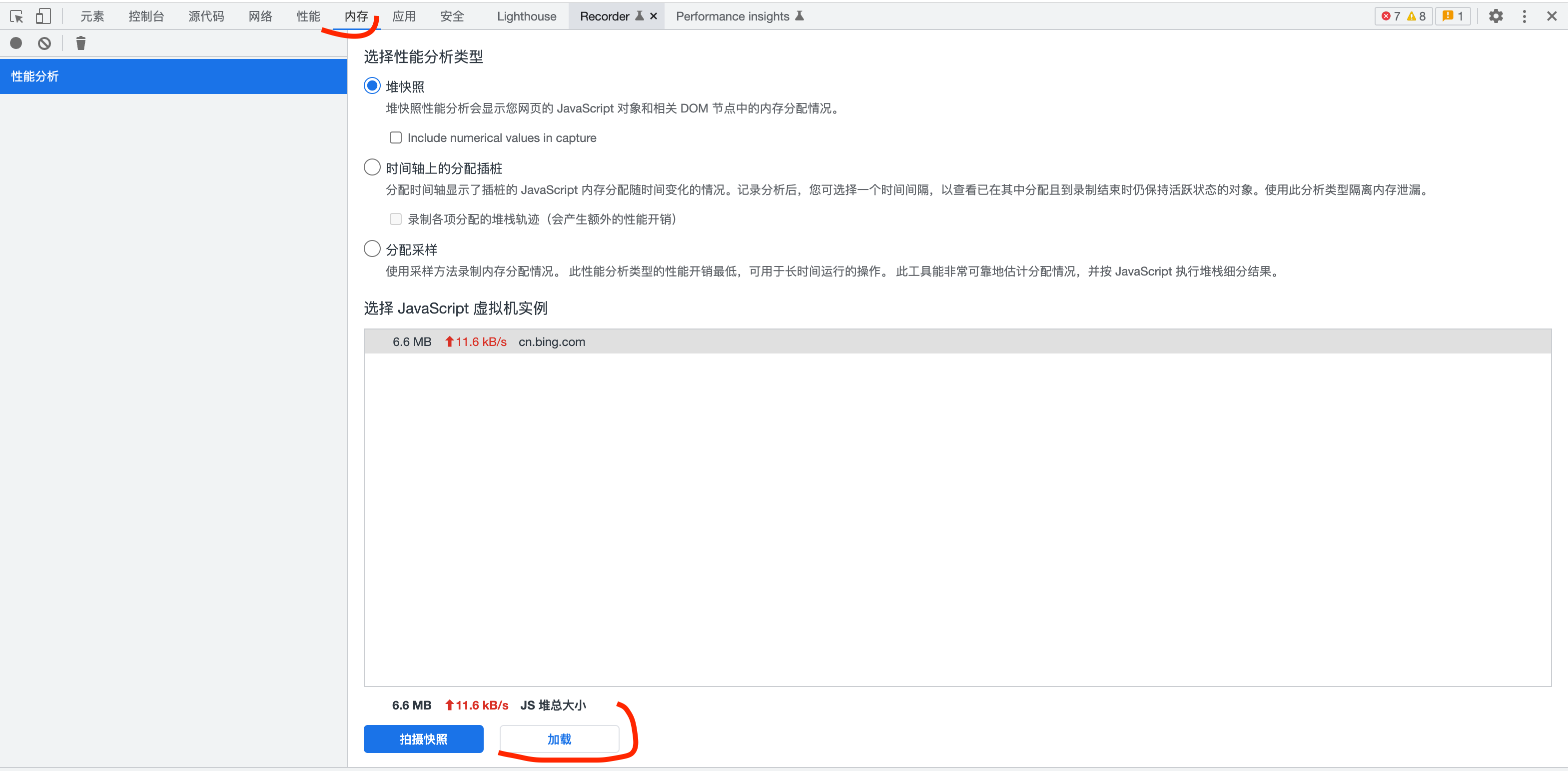 单击加载,选择xxx.heapsnapshot文件。