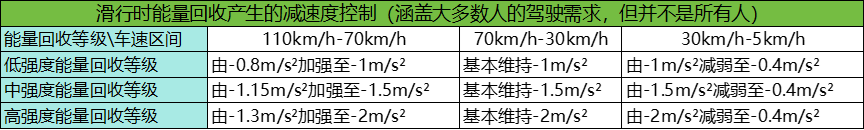车速90km/h~55km/h:控制能量回收产生的减速度为-0.4m/s²~-0.8m/s²;