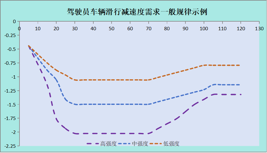 在高速行驶时,驾驶员对减速度大的需求并不强烈