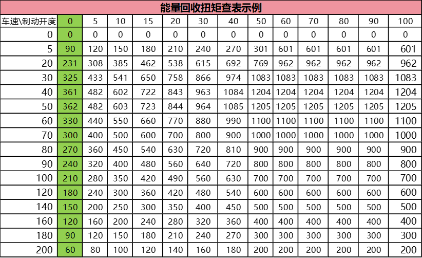 3.1.能量回收的扭矩标定表格如下图,多个等级会有多个表格