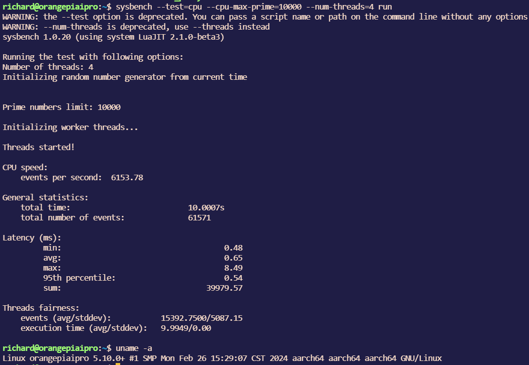 Sysbench是一个跨平台的基准测试工具,用于评估系统性能和稳定性。现在我们就用这个工具简单测试素数计算,OrangePi AIpro和我的主机电脑(AMD cpu 3600x)进行对比。。