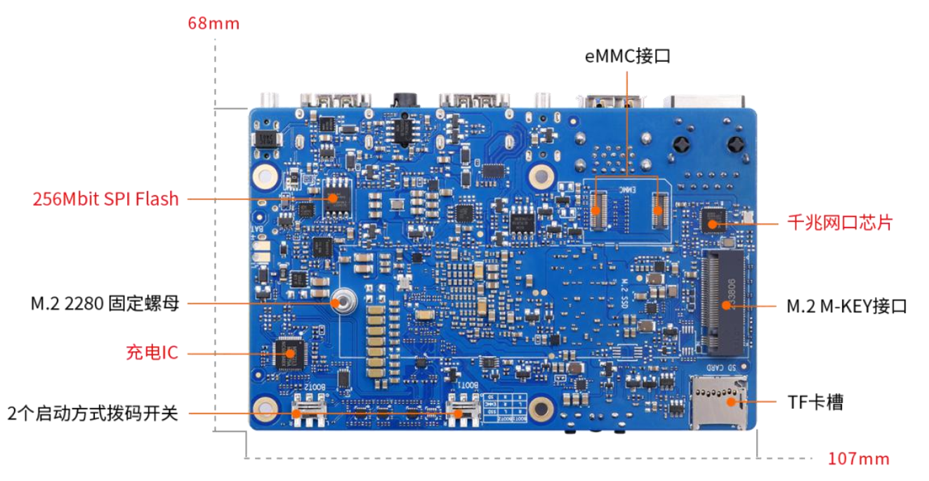 - 拥有8GB/16GB LPDDR4X,可以外接32GB/64GB/128GB/256GB eMMC模块,支持双4K高清输出。