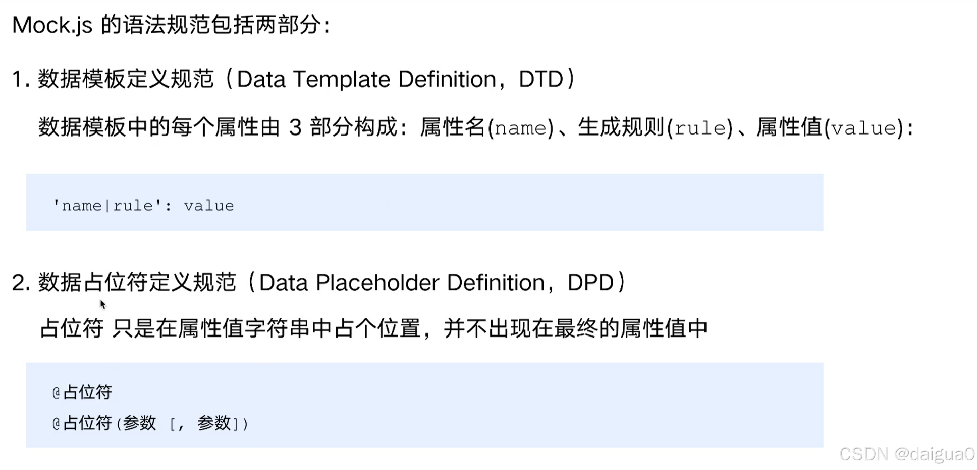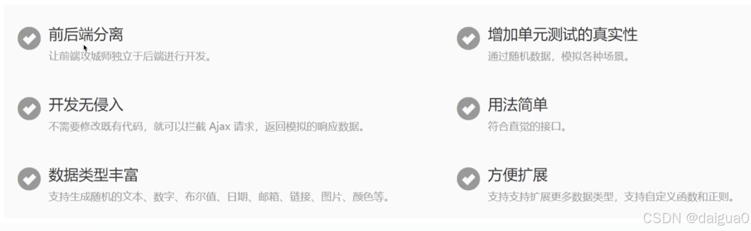 Mock: 一种模拟后端接口的解决方案,能让我们提前调用模拟接口,完成前端开发