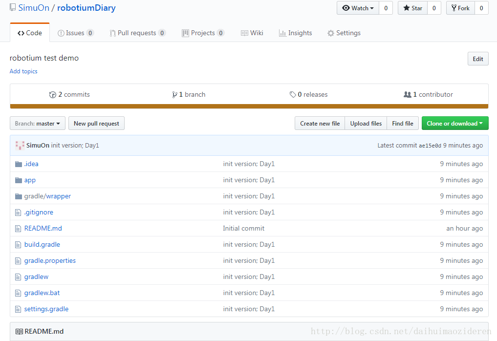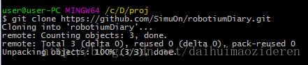 其中https://github.com/SimuOn/robotiumDiary.git为仓储路径。