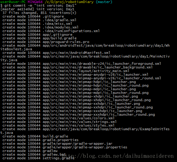 (3)进行项目开发,或将要上传的代码拷贝至robotiumDiary目录下,并提交commit。