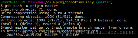 其中origin即为本地关联https://github.com/SimuOn/robotiumDiary.git的名称。在上传时需要用到该名称。