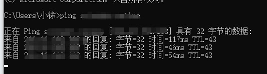 配置完成后我们的逻辑其实是 = 主机记录.域名.顶级域名,如上图我们的主机记录配置为www,那么生效后我们打开cmd 输入ping www.asiabullfrog.com 看看是不是对应上了我们云服务器的ip地址