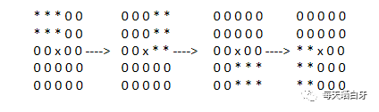 第三行也类似,就不一一列出了,通过旋转前和旋转后坐标的对比,我们可以得出一个很重要的规律