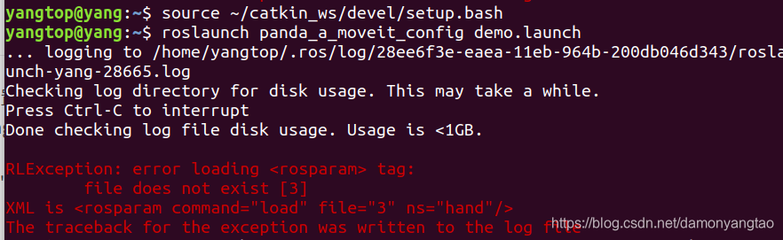 按照教程用moveit_setup_assistant生成配置包,打开终端运行roslaunch demo.launch,报错