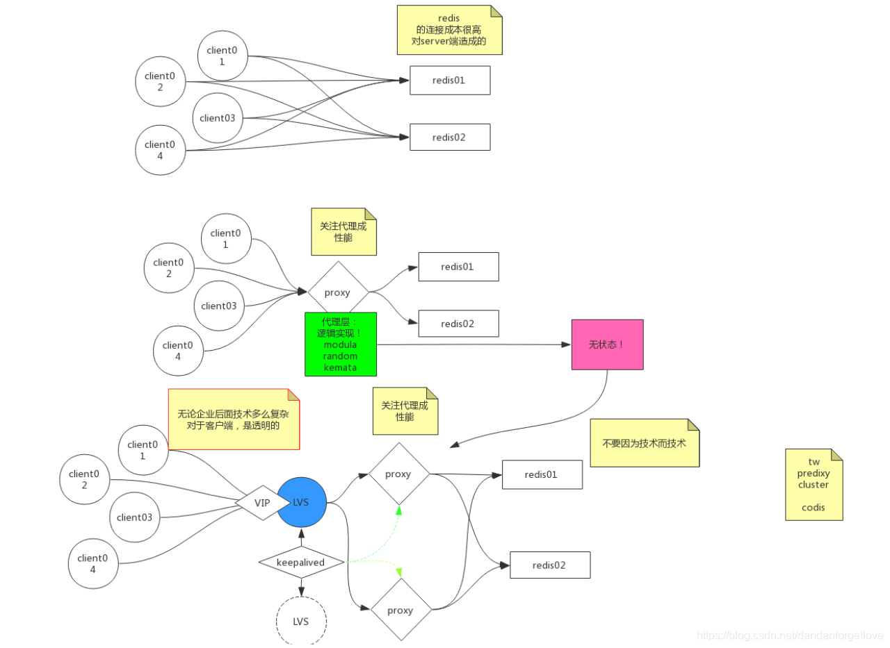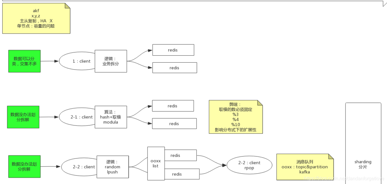 这种结构很容易添加或者删除节点. 比如如果我想新添加个节点D, 我需要从节点 A, B, C中得部分槽到D上. 如果我想移除节点A,需要将A中的槽移到B和C节点上,然后将没有任何槽的A节点从集群中移除即可. 由于从一个节点将哈希槽移动到另一个节点并不会停止服务,所以无论添加删除或者改变某个节点的哈希槽的数量都不会造成集群不可用的状态.