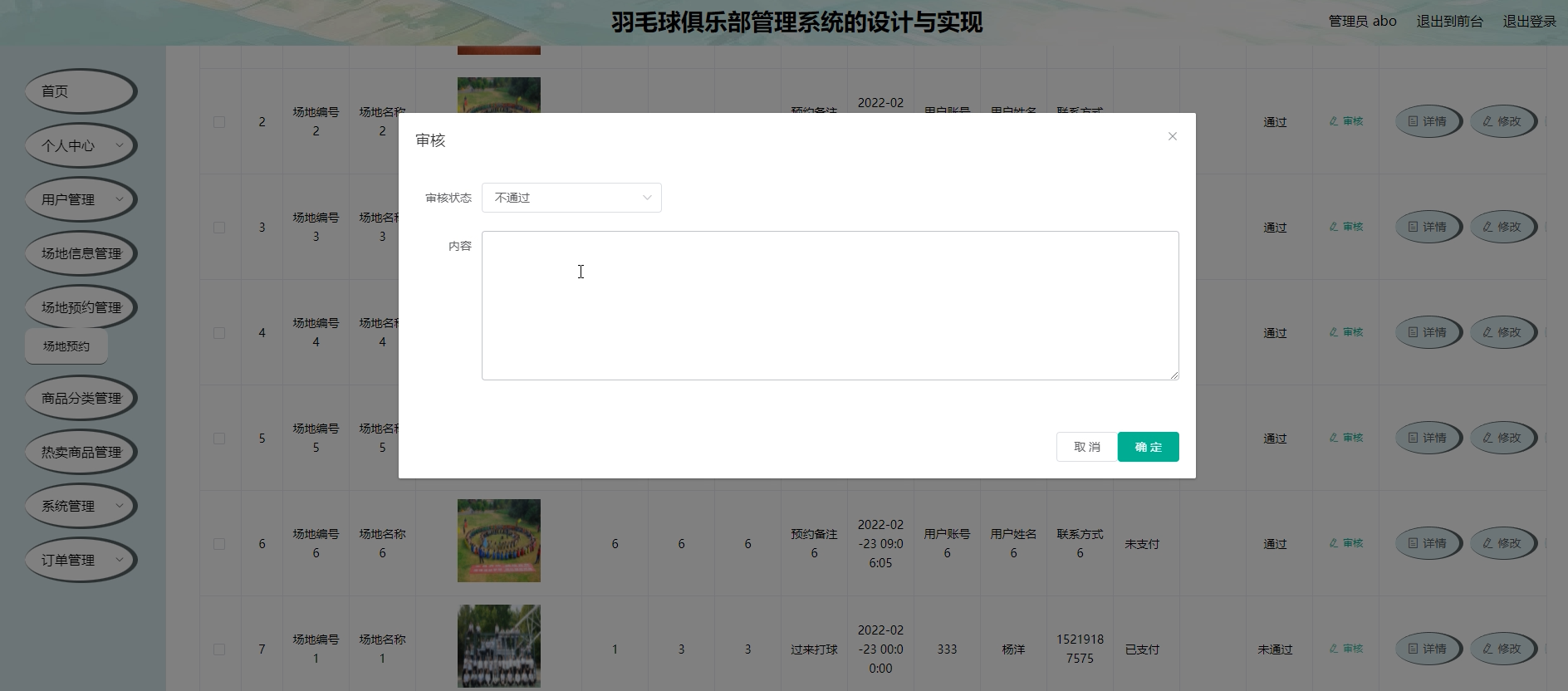 项目功能:用户,商品分类,热卖商品,场地信息,场地预约