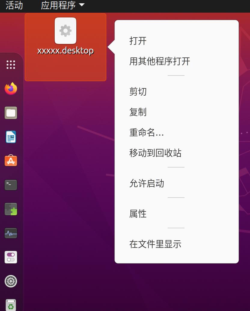 新建一个桌面快捷方式文件 xxxxxx.desktop,内如参见本文开篇文字,在终端命令行中通过命令 ./xxxxxx.desktop 能打开该应用程序,但是直接鼠标双击变为了使用文本编辑器打开,这不是想要的结果。