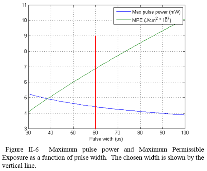 上图体现了激光脉宽与最大允许光强的关系。选择参数是一个博弈的结果,需要多方面权衡利弊。