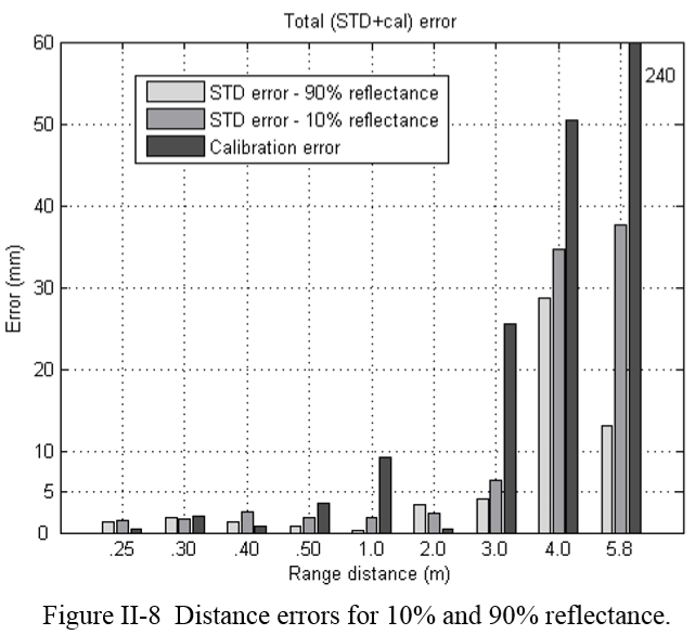 测距模组的主要误差来源是系统分辨率和校准误差。