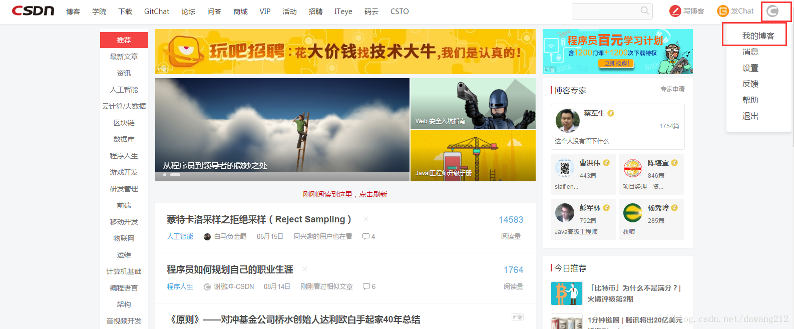 1、登录CSDN 网址为:www.csdn.net 输入账号和密码,登录,然后打开我的博客(右上角位置)