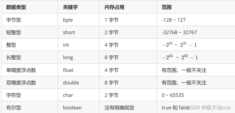 基本数据类型(Primitive Data Types):Java提供了8种基本数据类型,分别是: