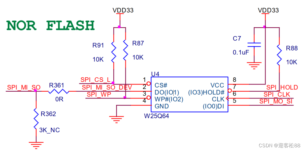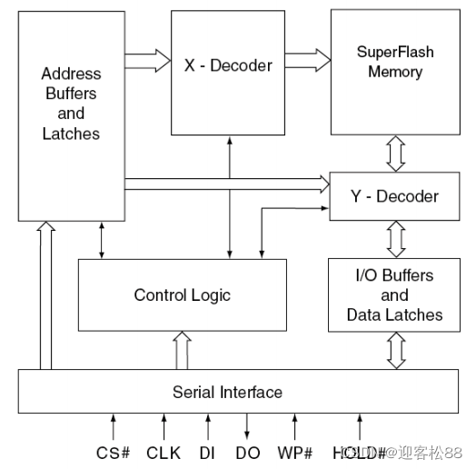 现有的串行NORFlash所采用的接口全部是SPI接口,因此也将串行NORFlash称为SPIFlash。SPIFlash(串行NORFlash)内部存储矩阵的访问和存储结构和并行NORFlash的一致,但是多了一个串行接口(SPI控制器),用于实现对串行数据的解码。
