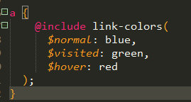 sass允许通过语法$name: value的形式指定每个参数的值。这种形式的传参,参数顺序就不必再在乎了,只需要保证没有漏掉参数即可。
