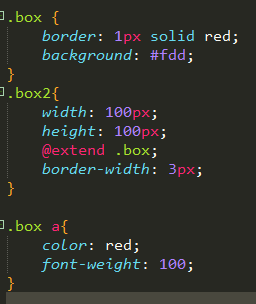 选择器继承是说一个选择器可以继承为另一个选择器定义的所有样式。这个可以通过@extend 语法实现。