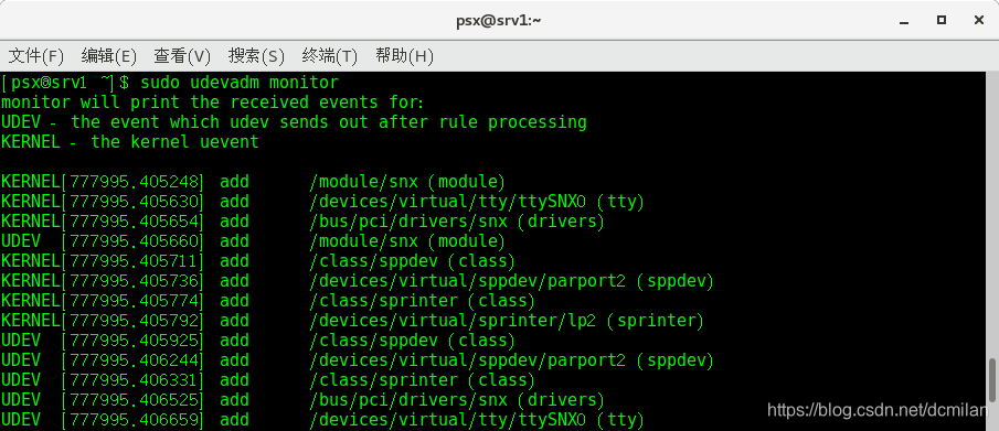 下面的终端显示为调用了modprobe snx后的输出,可以看到在第二步,内核发出消息到用户空间已经把串口名称确定了。