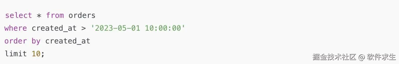 这里的 '2023-05-01 10:00:00' 相当于上一页最后一条数据的时间戳。下一次分页就从这里继续查,效率高得多。